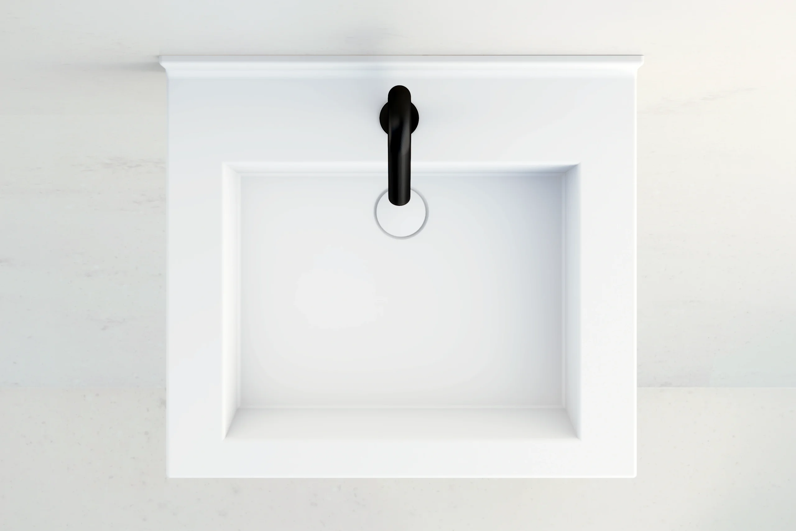 Plan vasque PMR monobloc ALCA 600 mm en Solid Surface V-korr blanc mat, au design compact et élégant. Parfaite pour les petits espaces, elle allie esthétisme, hygiène et durabilité au quotidien.