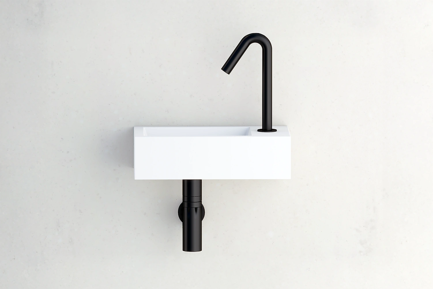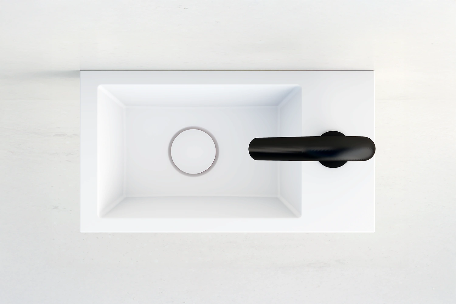 Lave mains à fixer au mur en Solid Surface Blanc mat avec plage interchangeable gauche ou droite.