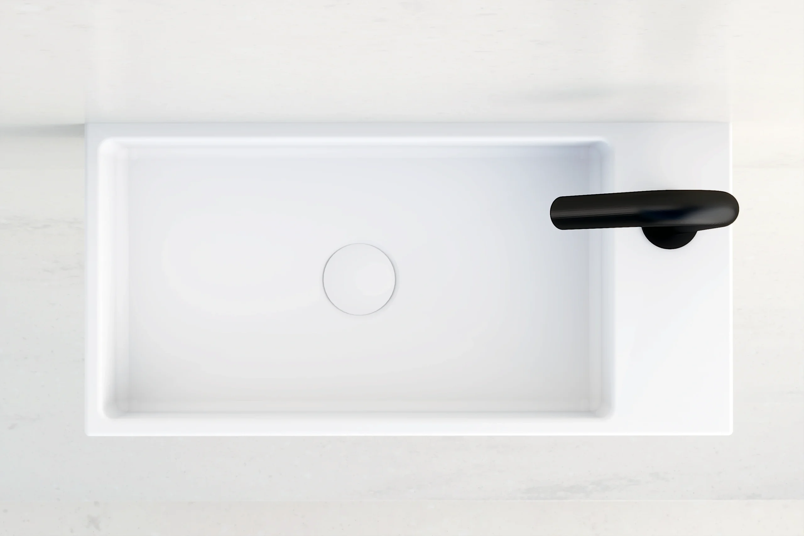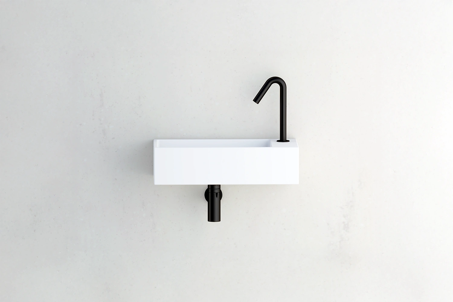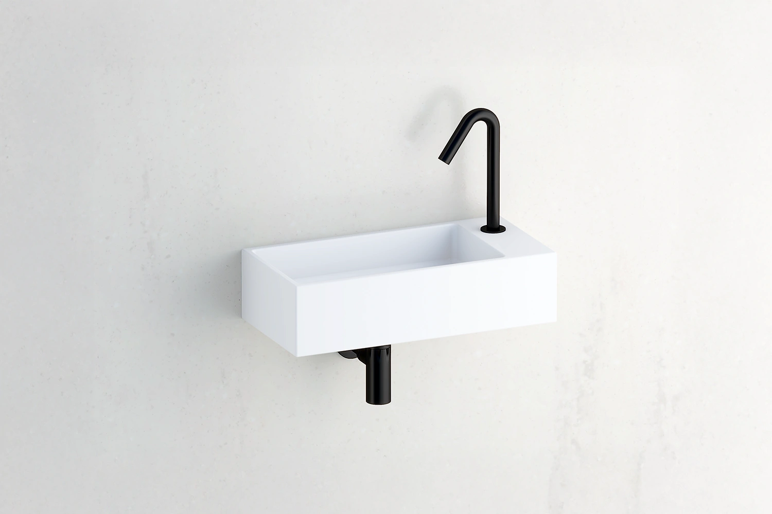 Lave mains à fixer au mur en Solid Surface Blanc mat avec plage interchangeable gauche ou droite.