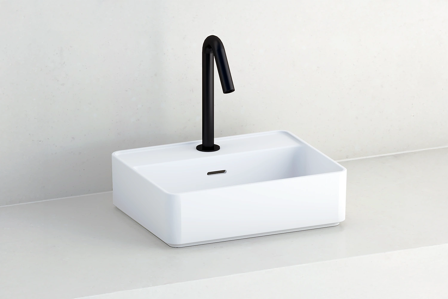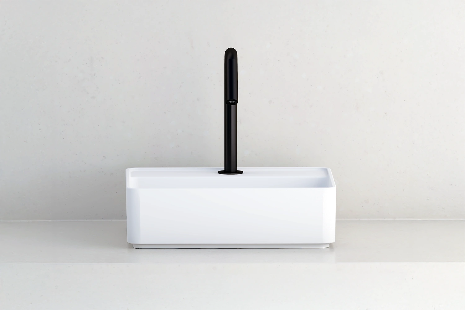 Vasque blanche à poser rectangle SUN410 en Solid Surface V-korr blanc mat