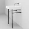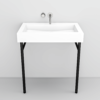 Vasque conçue pour être installée de manière indépendante, sans nécessiter de fixation au mur ou un meuble sous-jacent. Cette vasque autoportante en Nano Surface repose sur des pieds en acier laqué.